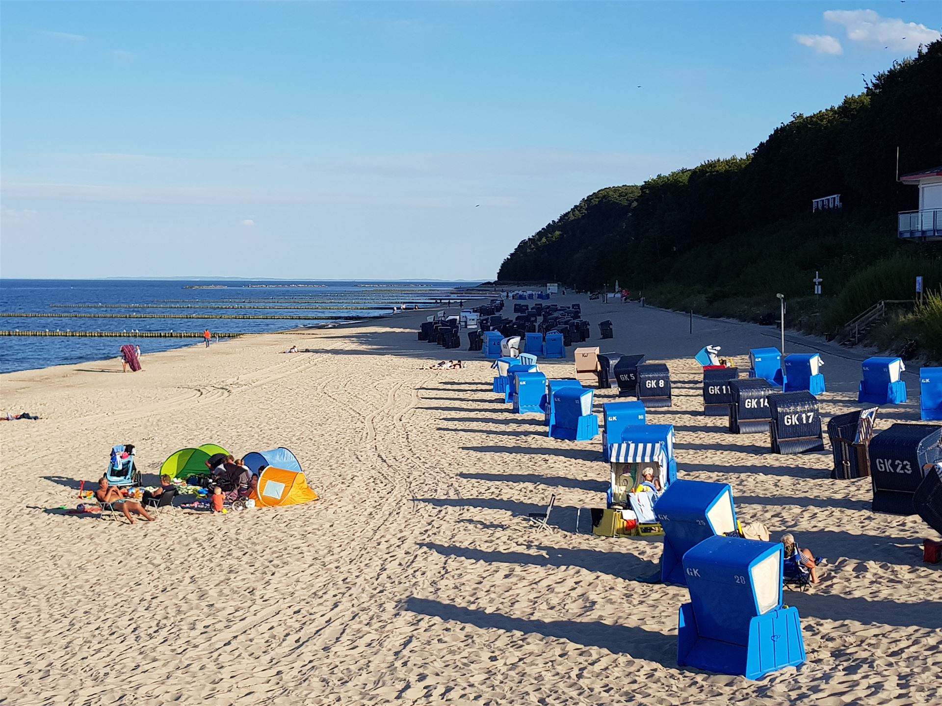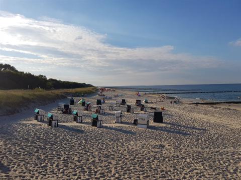 Ein langer Sandstrand ist in Sichtweite, ideal für einen Bade- oder Familienausflug.